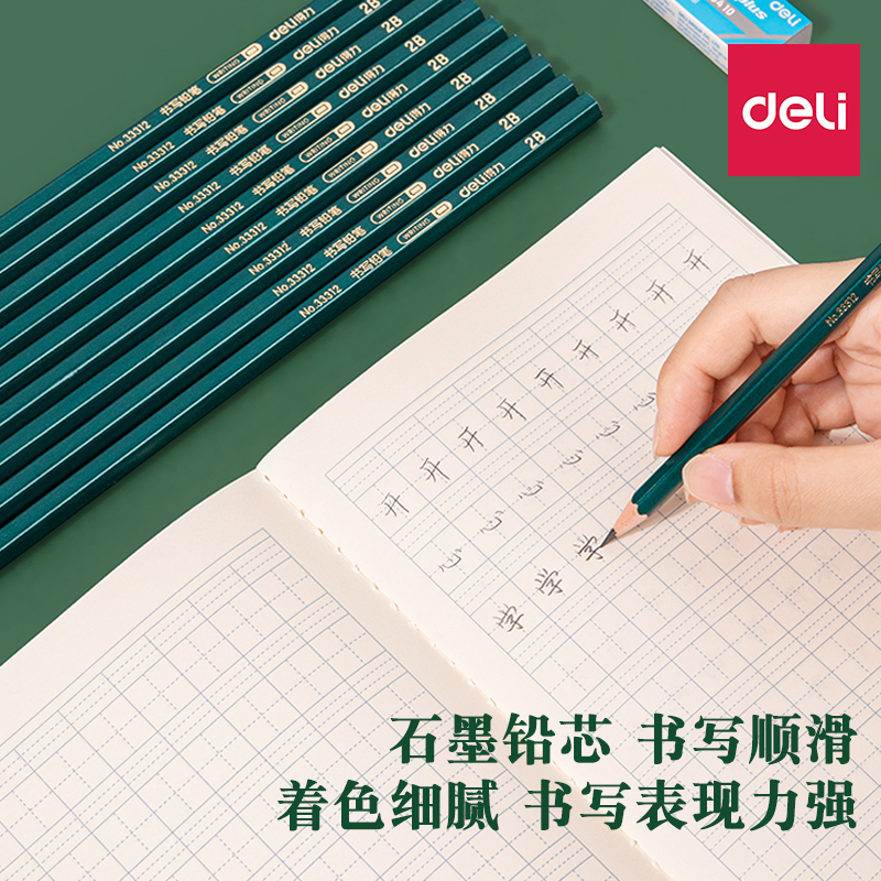 得力铅笔小学生专用一年级二年级学生专用幼儿园初学者2b铅笔无毒素描绘图铅笔小绿杆hb铅笔小学生专用绿色