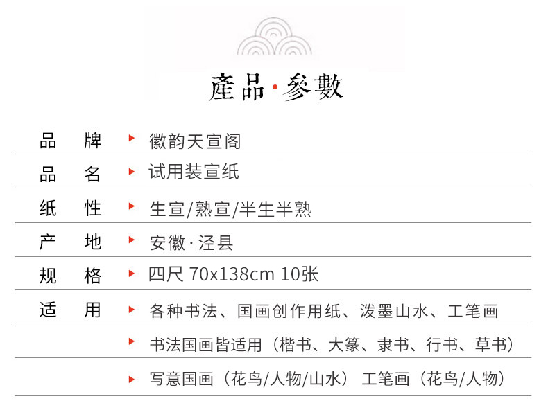 徽韵天宣阁安徽泾县四尺整张宣纸10张试用装生宣纸半生熟宣蝉翼手工净皮仿古书法国画写意山水花鸟作品专用纸