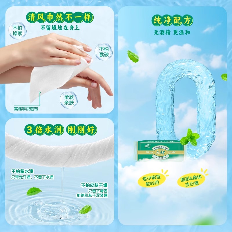 【开学季】清风湿巾六神联名花露水香湿纸巾学生军训神器清凉醒神