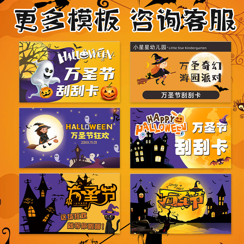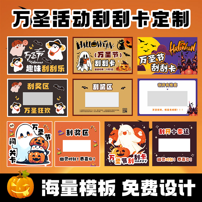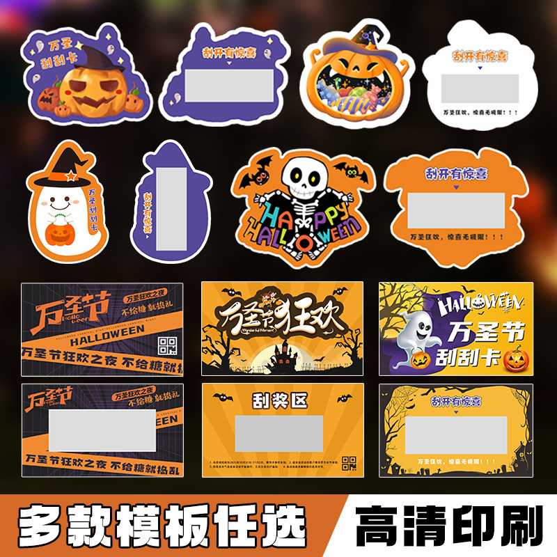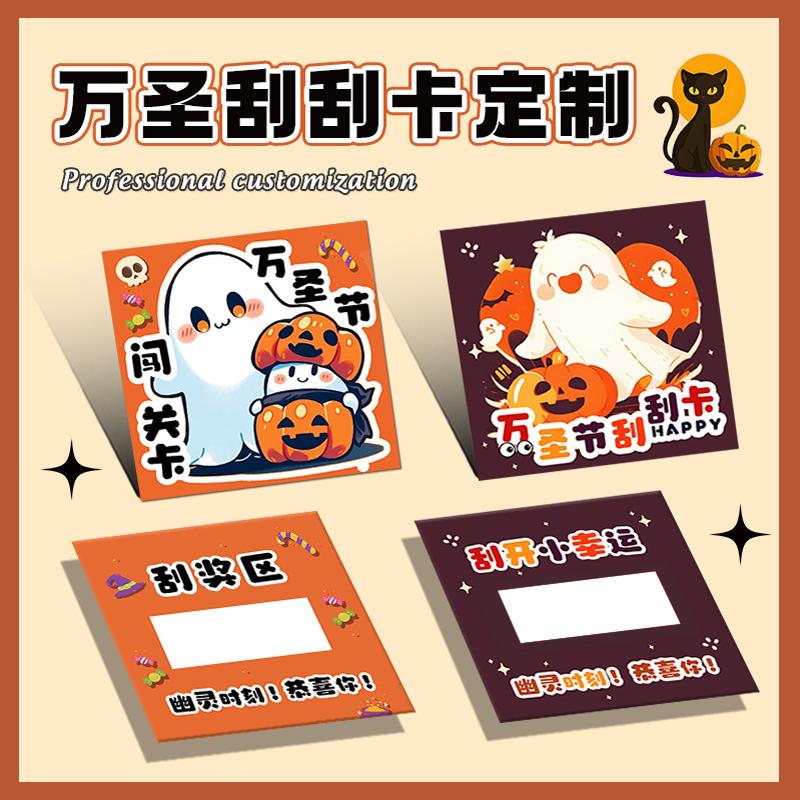 万圣节刮刮卡定制儿童礼物中奖励抽奖券自制活动涂层刮奖卡片南瓜糖果游戏惊喜道具幼儿园diy兑换刮刮乐制作