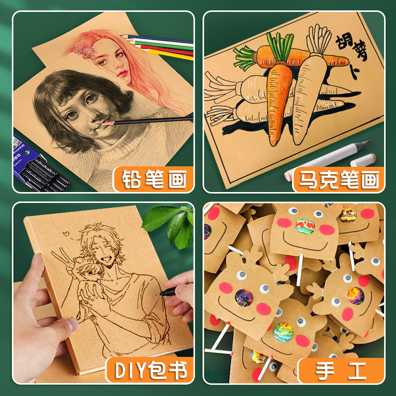 元浩8K牛皮纸A4牛皮卡纸A3画画美术专用4K素描绘画幼儿园手工厚硬16K打印纸封面8开黄浅色A5复古包装封面装订