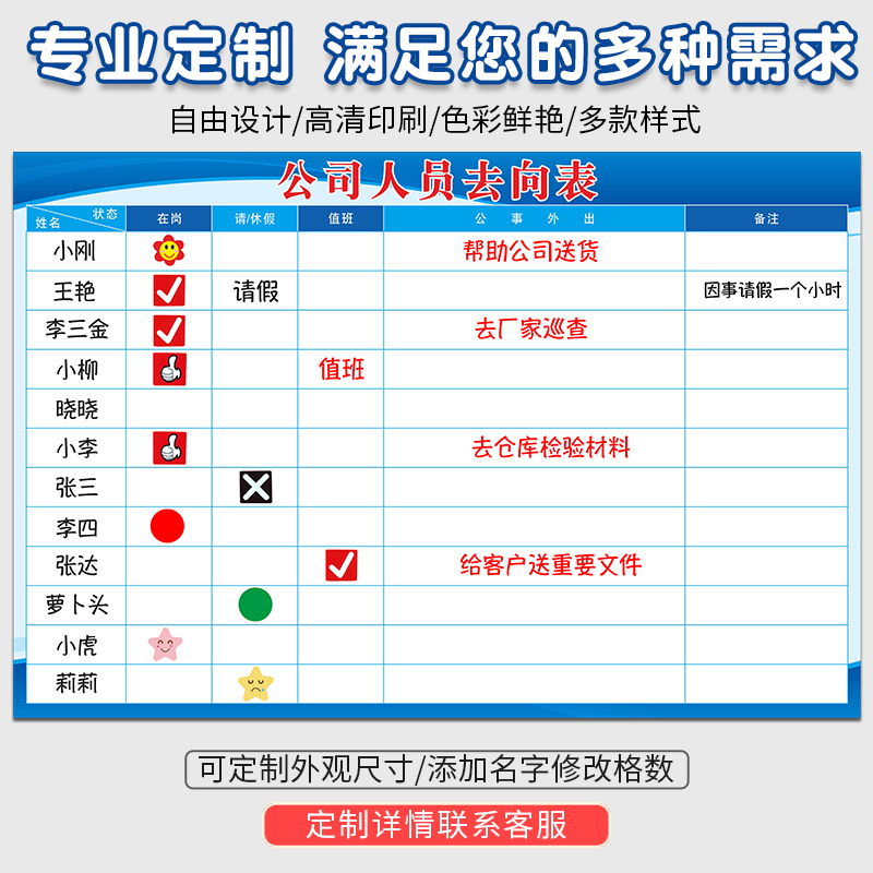 人员去向表人员状态表值班安排表人员登记表考勤表人员去向告示栏