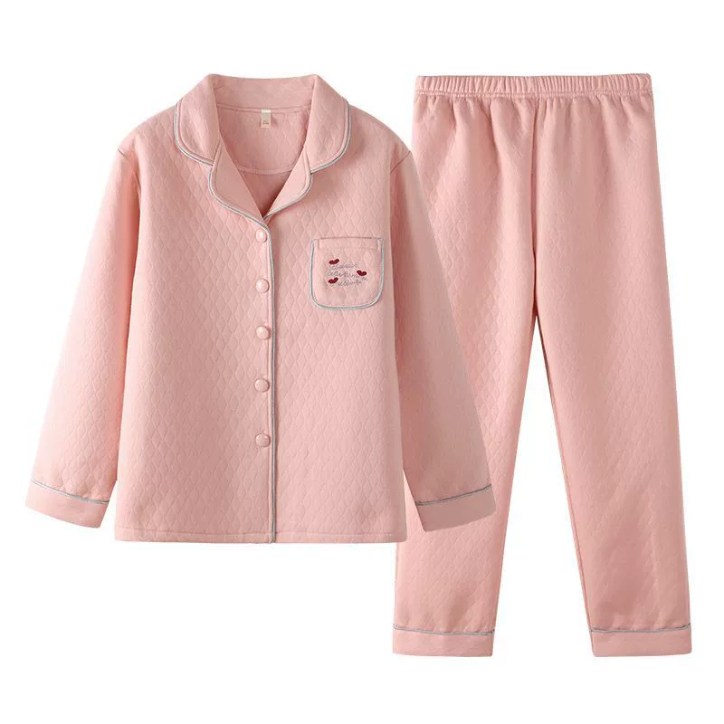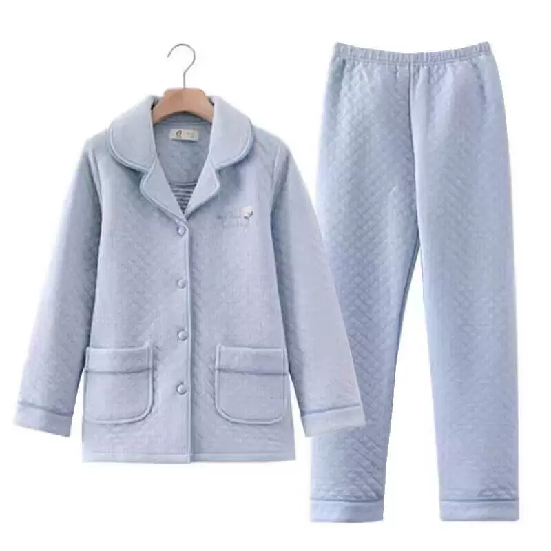 纯棉秋冬季加厚棉睡衣女长袖夹棉保暖开衫套装空气棉家夹层居家