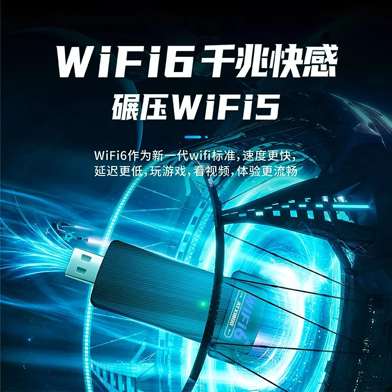 无线网卡台式电脑wifi6接收器台式机笔记本免驱动5g双频电竞网络外置usb信号发射器连接热点千兆高速上网