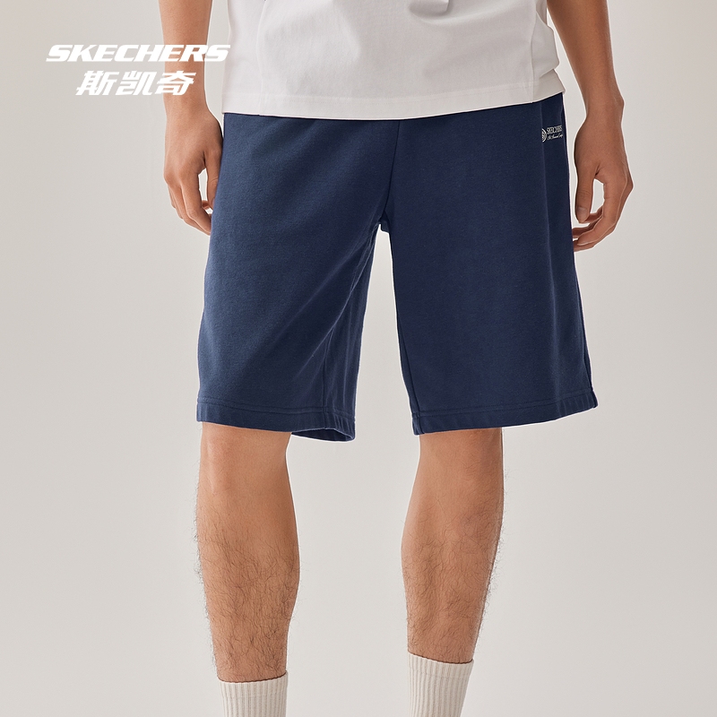 Skechers斯凯奇男求2025新款宽松针织运动抽绳休闲裤时尚五分短裤