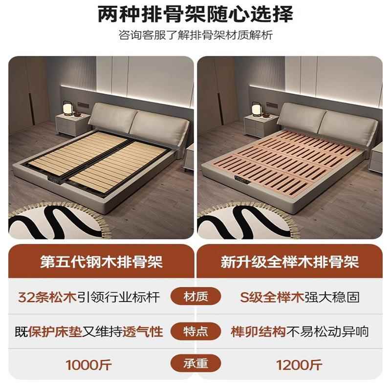 真 皮床现 代简 约主 卧意 式小户 型双 人床气 压饰品储物饰品
