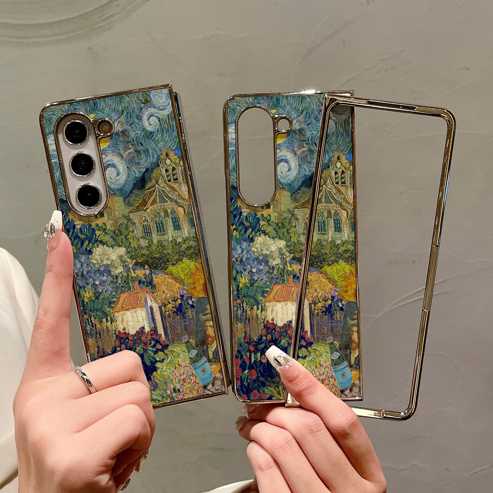 热瓜适用于三星GalaxyZFold7/6/5/4/3手机壳折叠屏保护套梵高油画小村落电镀金边新款高档折叠壳高级感全包套