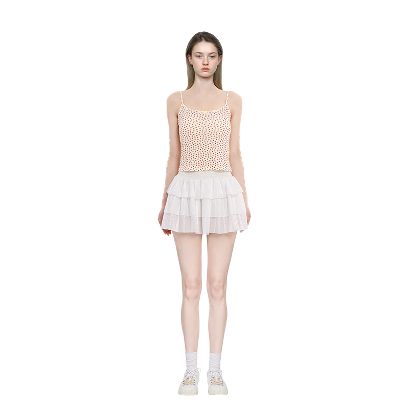 eihey诶嘿秋季刺绣薄纱下摆蕾丝拼接裙摆叠穿打底修身吊带背心女