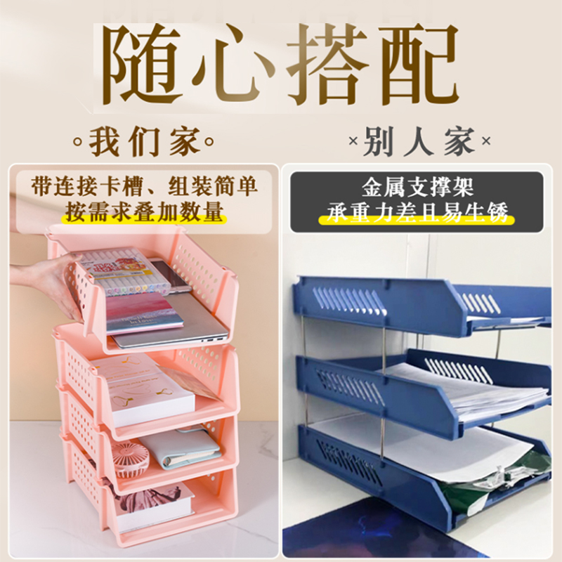 办公室桌面置物文件架子可叠加文件夹收纳盒资料整理多层收纳架A4桌上文件盘三层归类整理架子档案收纳架