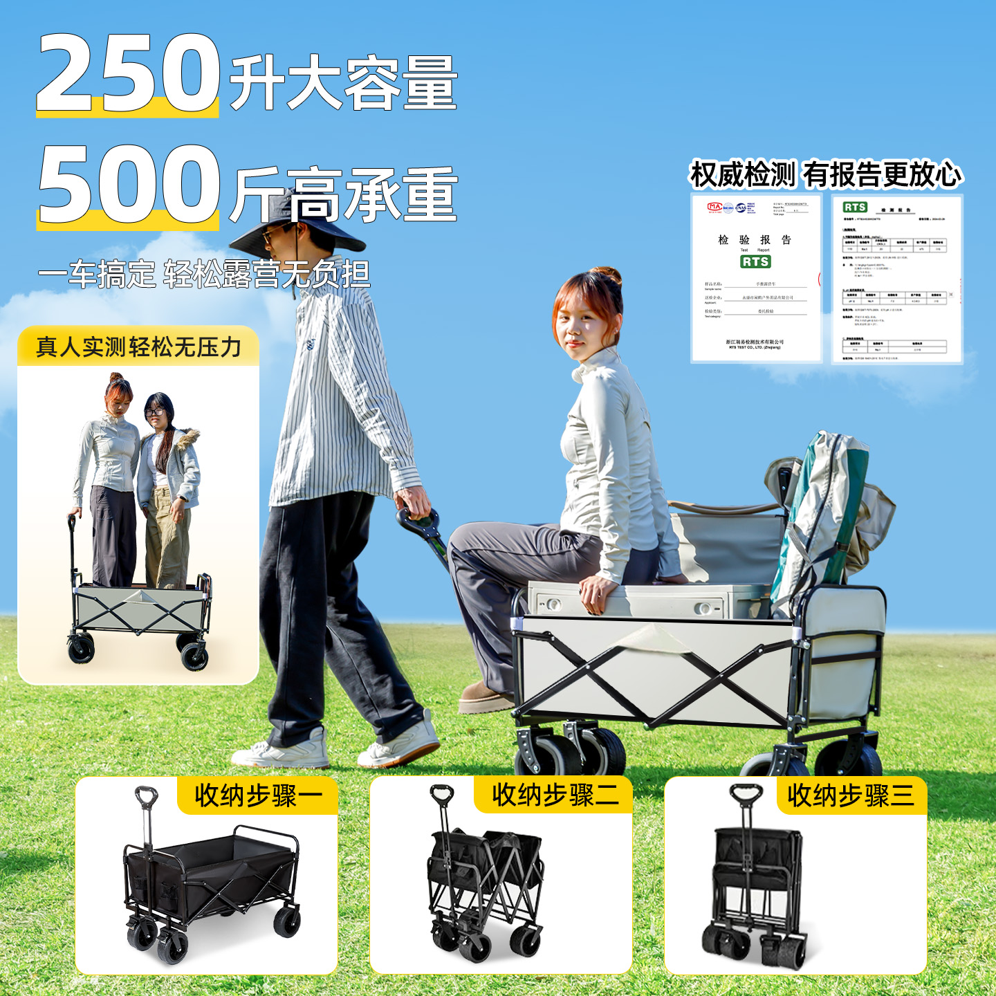 歌秀丹露营车手推车营地拖车户外可折叠野营小拉车野餐车儿童可躺