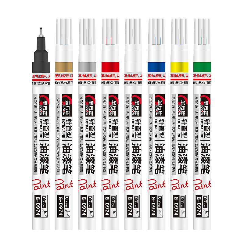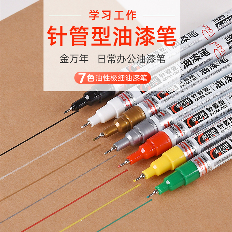 金万年油漆笔0.7mm极细针管彩色签到笔diy卡纸手绘高光笔金银白色油性记号勾线笔补漆笔不易掉色可画衣服鞋子