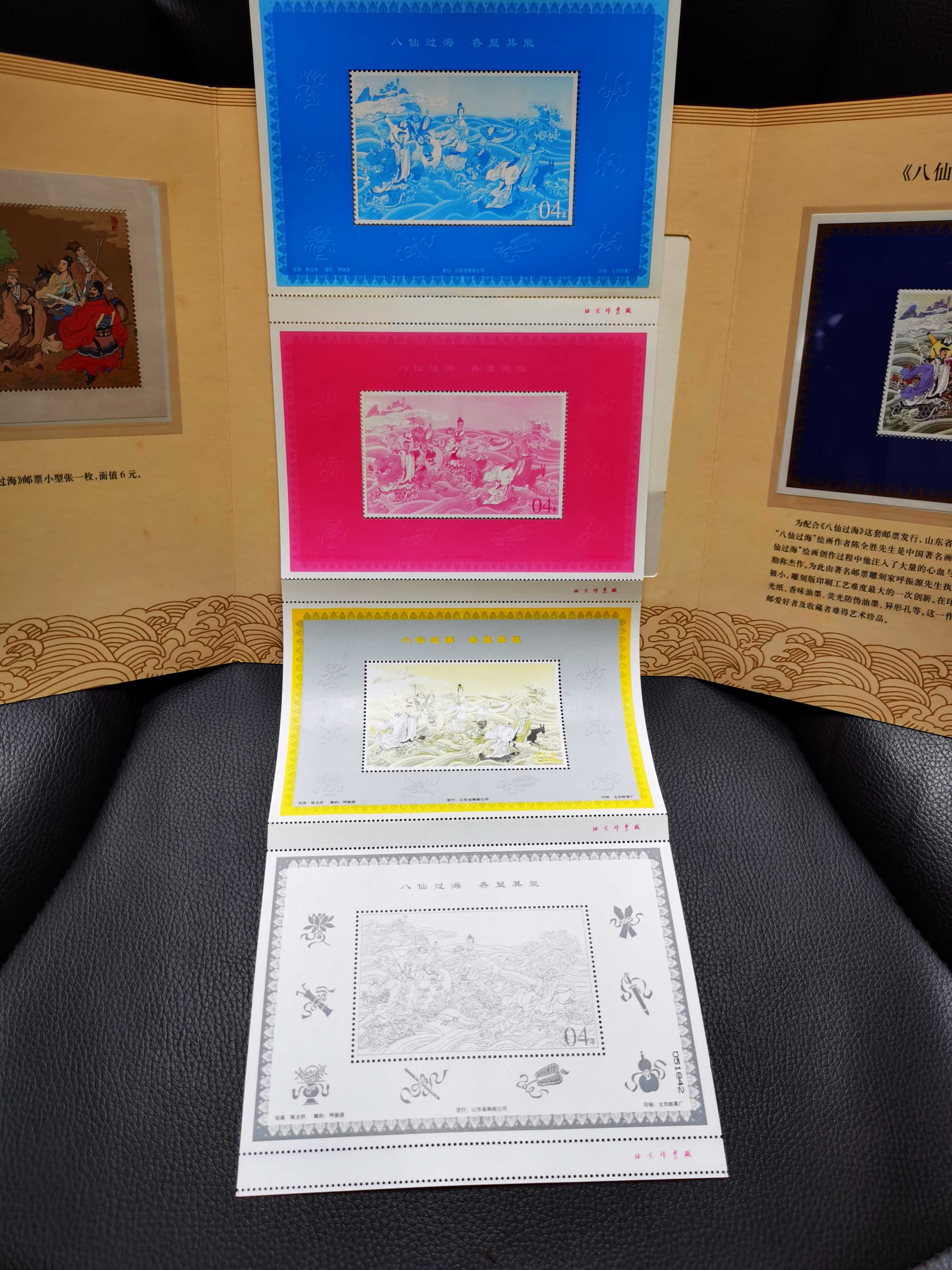 2004八仙过海邮票防伪纪念张及雕刻分叠色连印珍藏版邮折,带证书