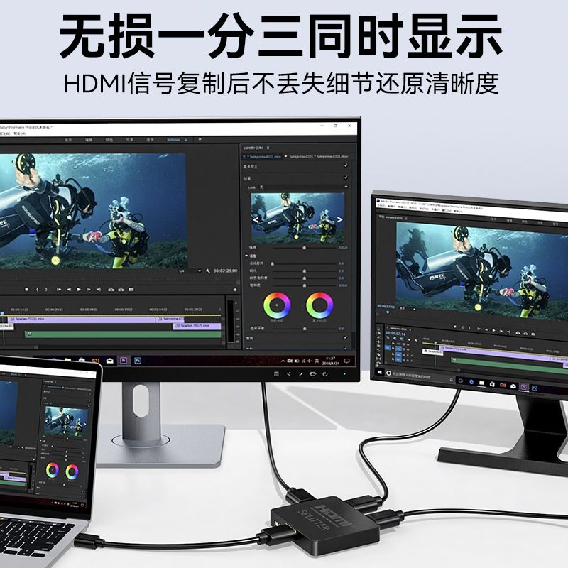 hdmi分配器一分二同时显示一样的画面4K高清分屏器1进2/3/4出电视