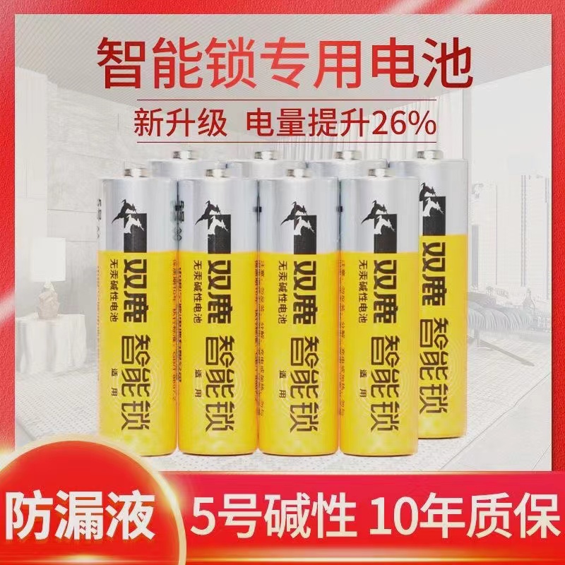 第2代双鹿智能锁专用电池5号LR6密码锁电子锁指纹锁家用碱性电池正品 适用于德施曼小米三星凯迪仕 1.5V门锁