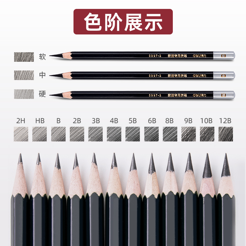 得力4b素描铅笔美术生专用2比素描专用铅笔软碳笔初学者速写14b8b6b学生用画画考试铅笔5b绘画铅笔美术用品