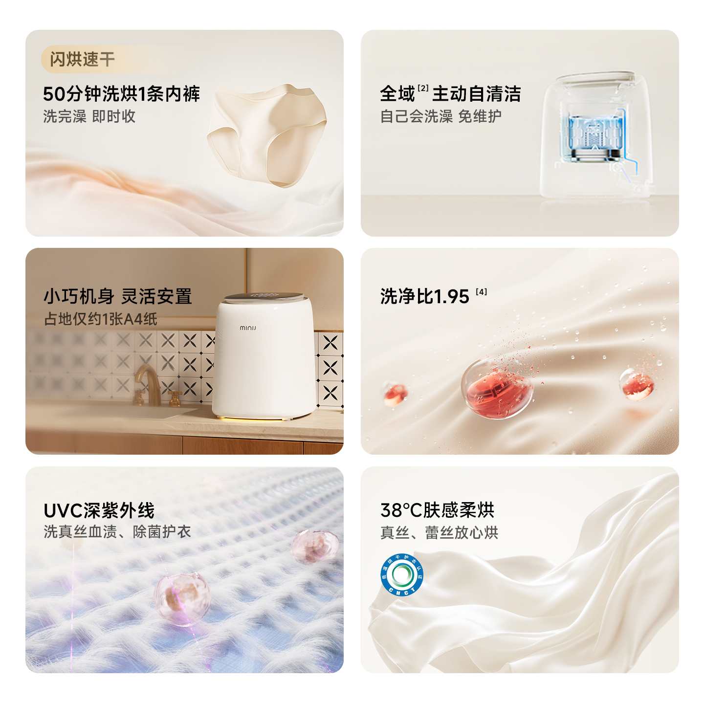 小吉内衣裤专用洗衣机小型迷你UVC除菌双路智投自清洁洗烘一体
