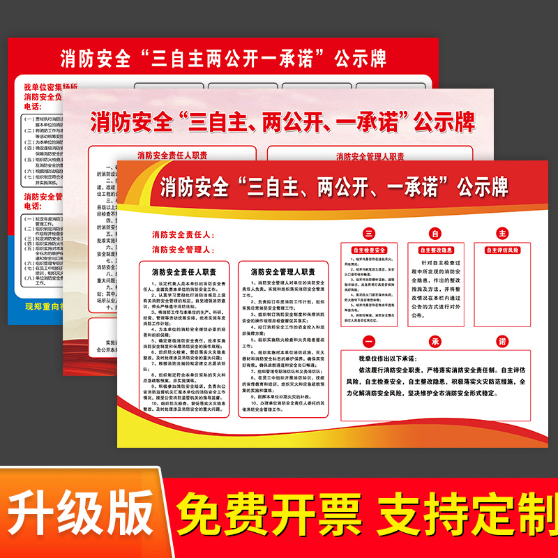 三自主两公开一承诺公示栏消防安全承诺书安全责任人公示牌消防安全管理制度责任人职责告知栏消防维保责任牌