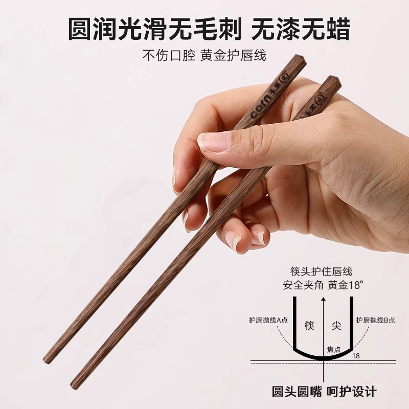 利瓷鸡翅木筷子家用防滑防霉木质快子10双20双家庭套装木箸