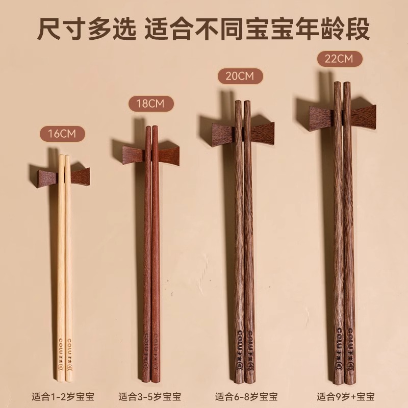 儿童筷子家用高档抗菌鸡翅木实木3岁以上宝宝训练筷子小学生专用