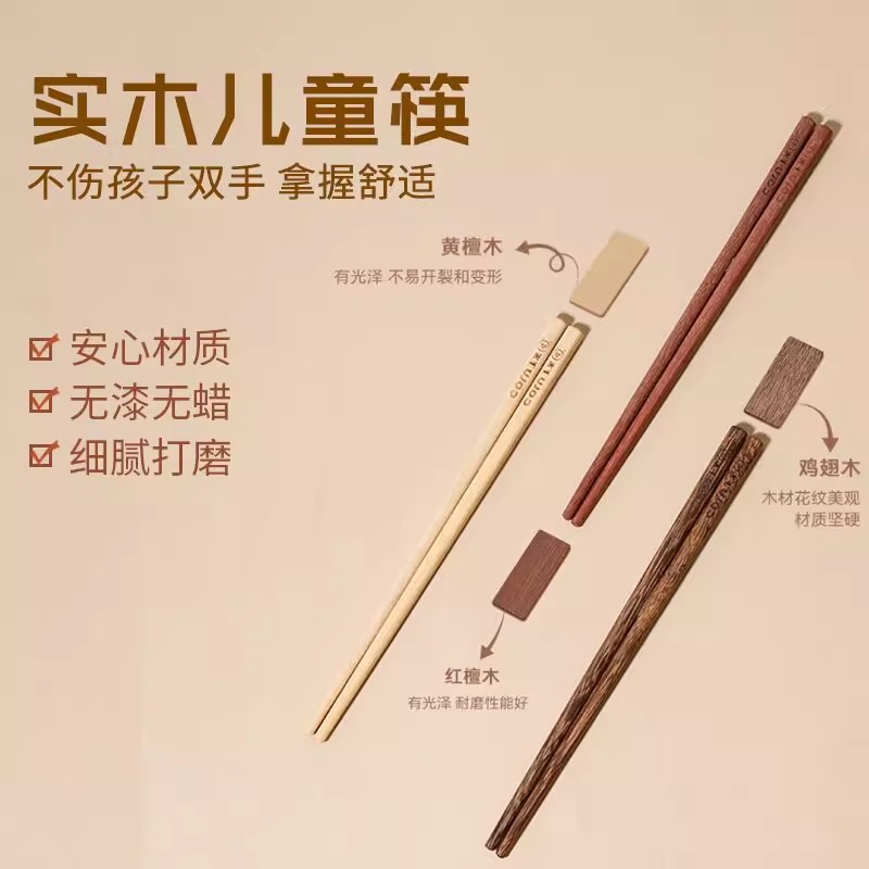 玉米实木儿童筷子6岁以上家用木质宝宝筷5木筷木头小短幼儿园专用