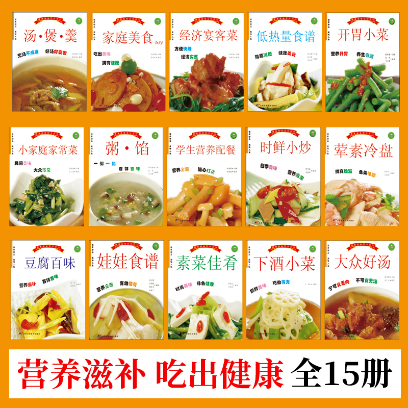 15册健康美味百分百食谱菜谱营养美食烹饪步骤做法家庭素菜佳肴汤煲羹下酒小菜小家庭家常菜小炒滋补简单食物牛肉食材豆腐巧做