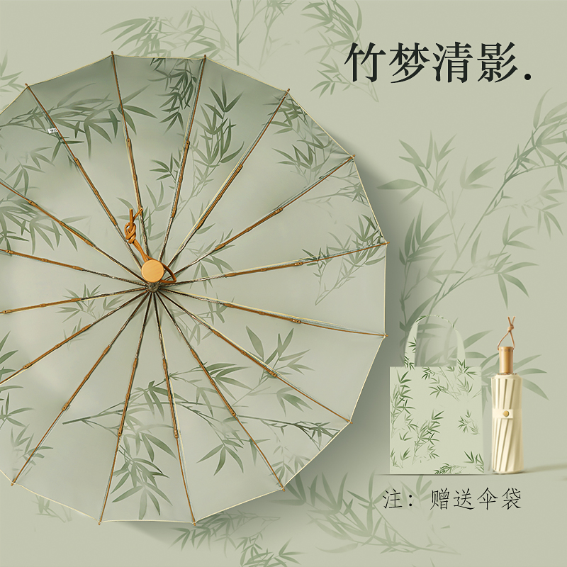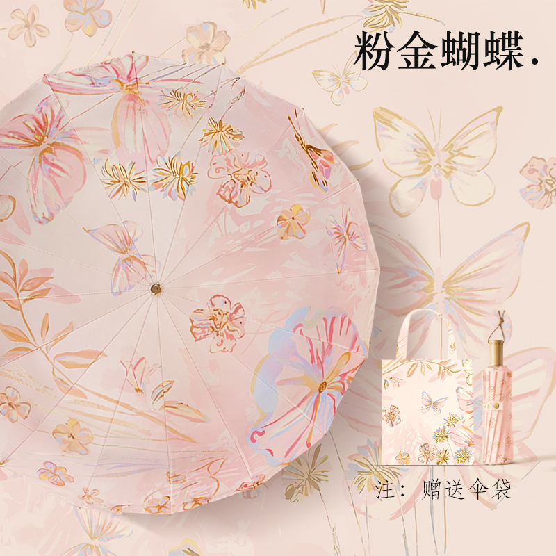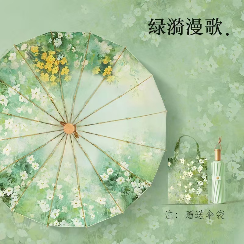 【官方踏青出游季】16骨金杆彩胶防晒伞超强防紫外线两用新中式国