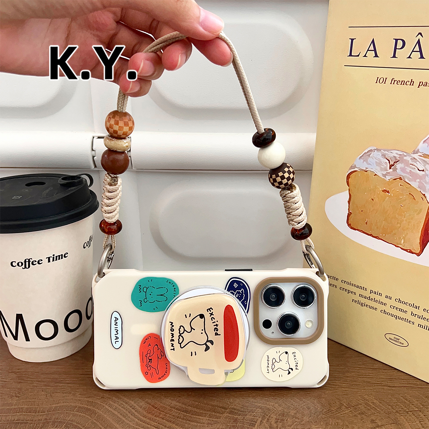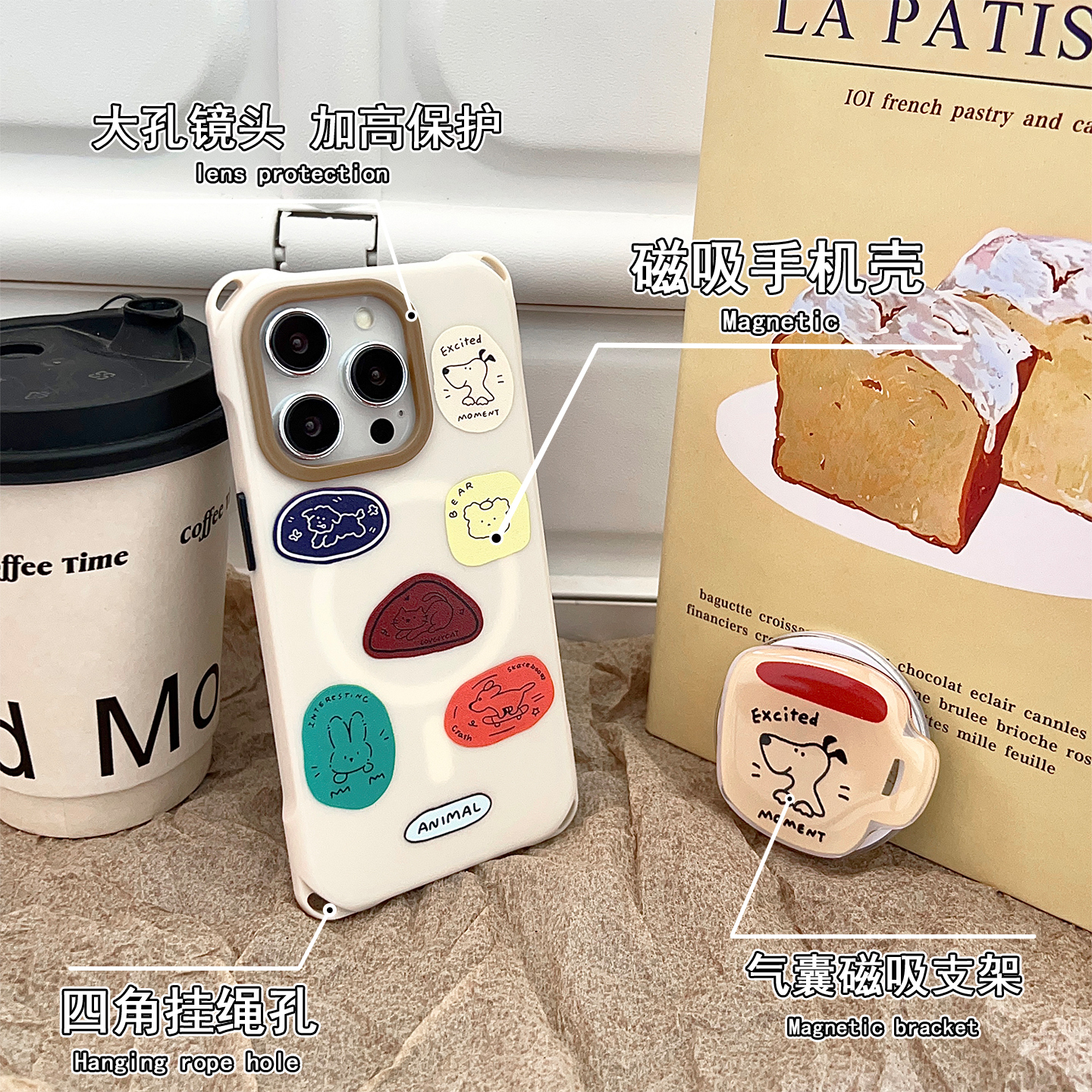水杯小狗磁吸支架手机壳带挂绳适用于苹果17/16Pro四角开孔华为mate70/60Pro手提斜挎小米14/15四角防摔硬壳