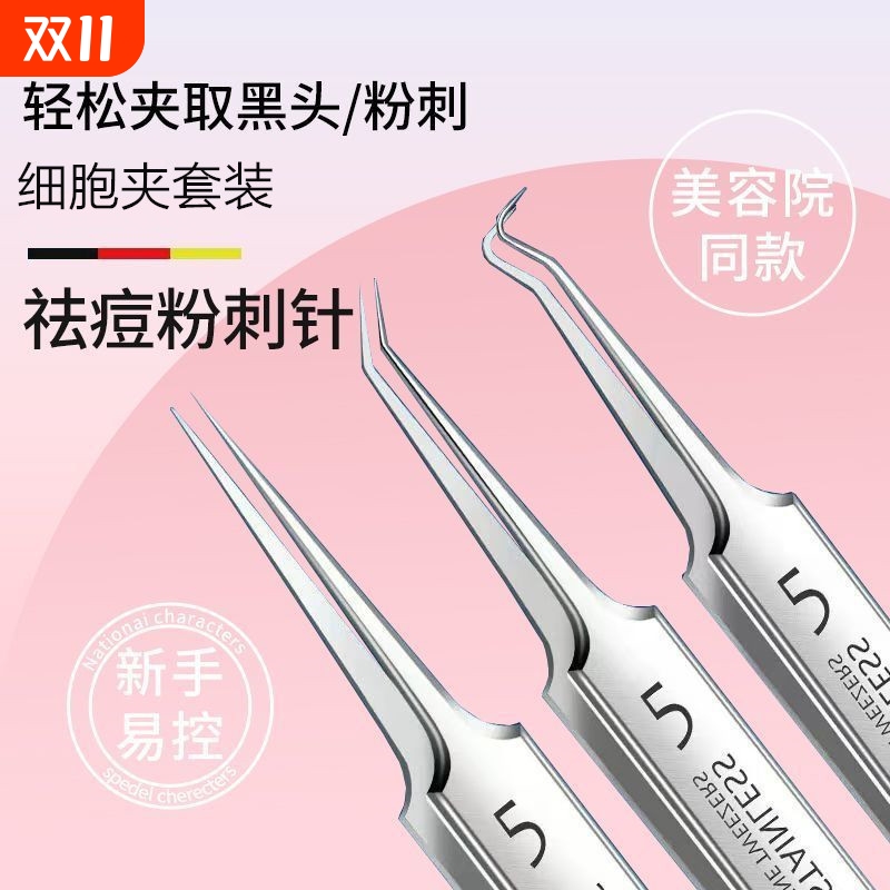 超尖细胞夹粉刺针黑头夹镊子暗疮针超尖套装挤痘痘工具美容院专用