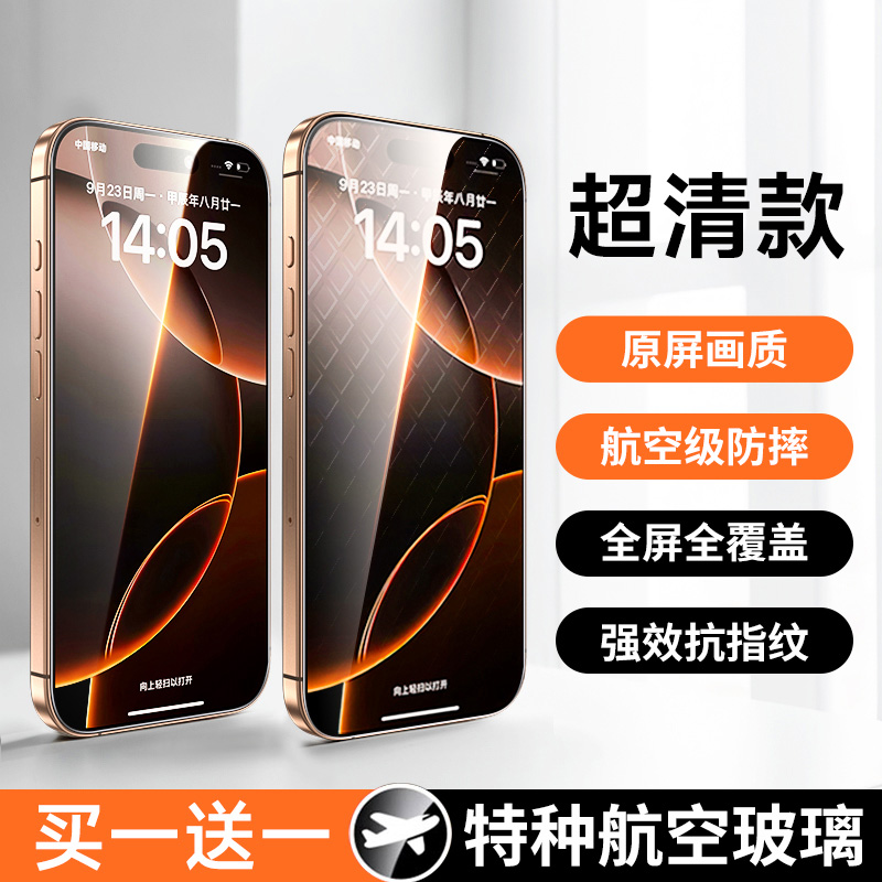 无黑边真防摔适用苹果17新款iPhone17Pro钢化膜16ProMax手机保护膜15pm全覆盖抗反射ip14防窥13无尘仓贴膜12