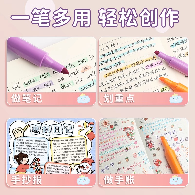 笔记荧光笔糖果色标记笔学生记号笔彩色粗划重点韩国小清新荧光笔