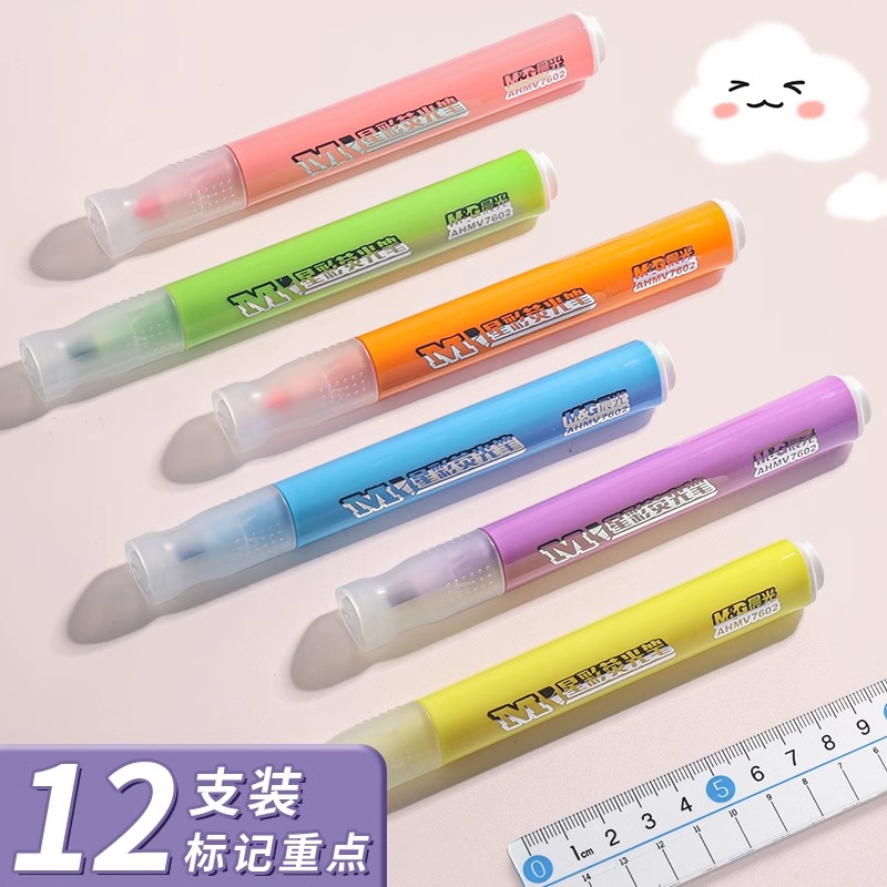 晨光按动荧光笔小学生专用划重点优品小方芯记号笔初中生专用高颜值彩色大容量笔记标记笔学习考研高中生文具