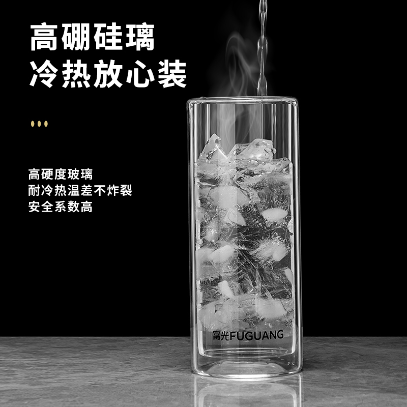 富光玻璃杯双层茶杯套装家用客厅待客耐热透明加厚杯子办公室水杯