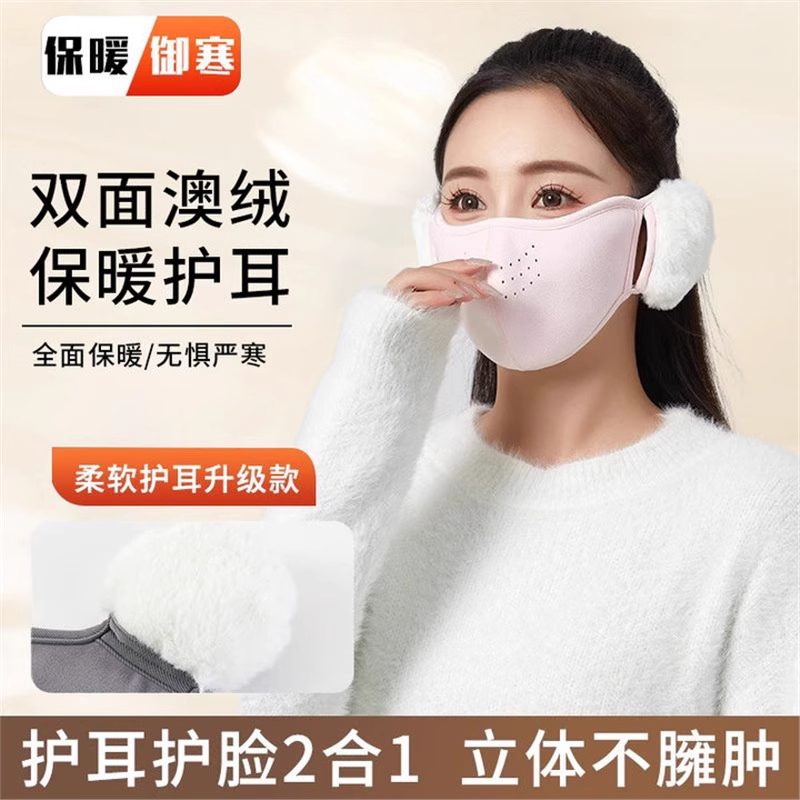 保暖耳罩口罩女冬季2025纯棉防风防寒加绒护耳二合一面罩面纱耳套