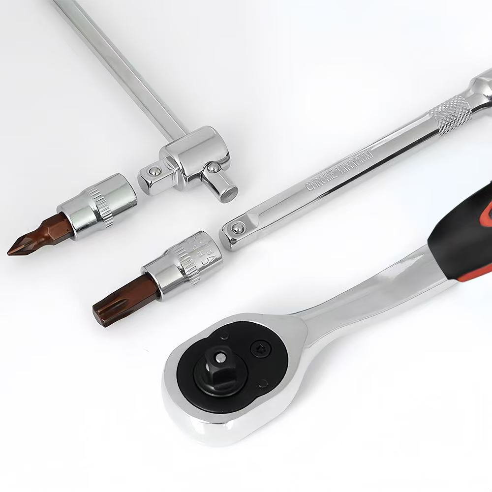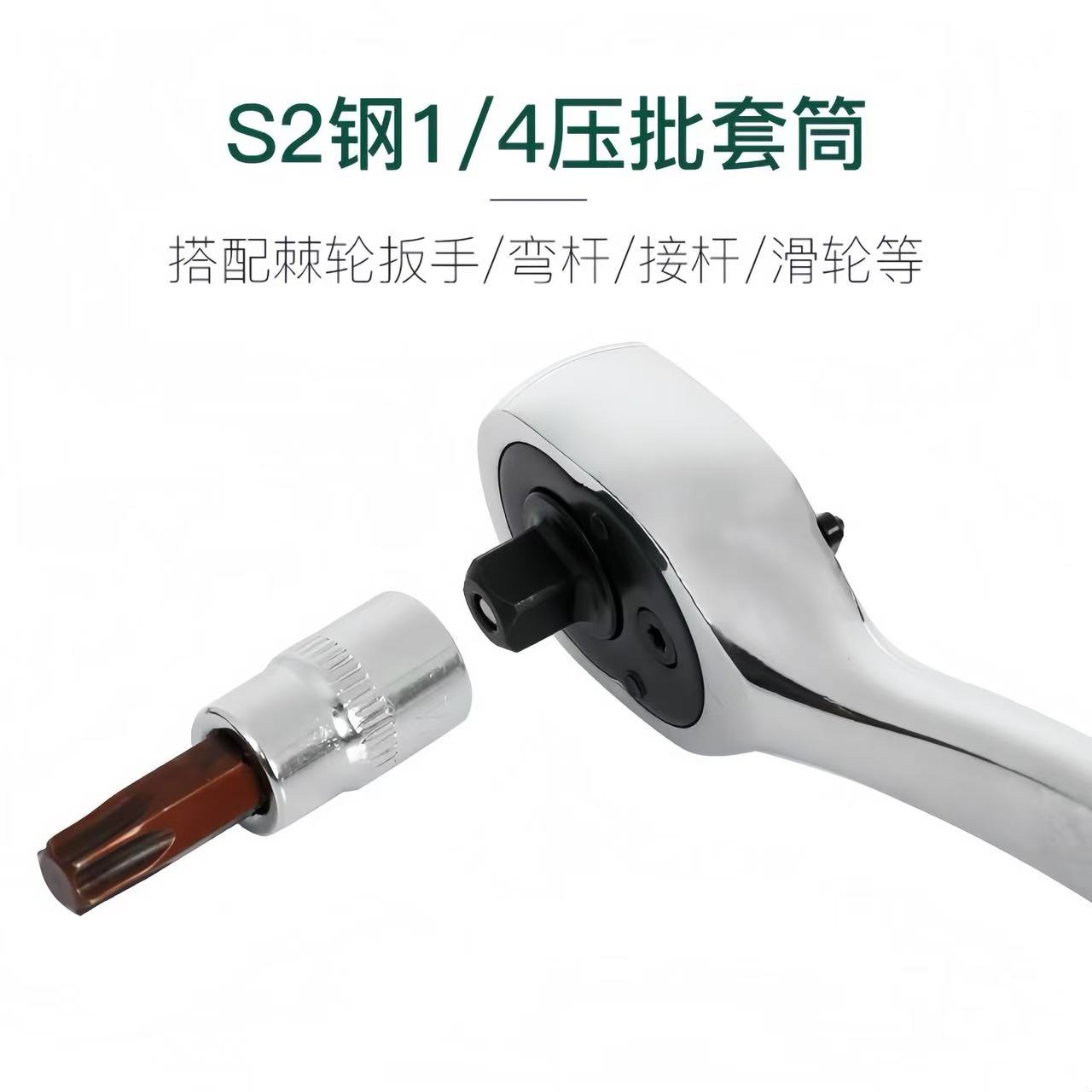 1/4小飞压批套筒梅花内六角一字十字米字旋具头快速棘轮扳手工具