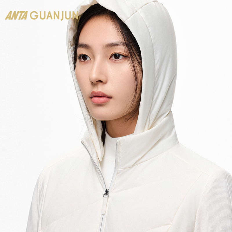 安踏冠军全天候系列丨90鸭绒羽绒服女加绒修身棉服外套162510616