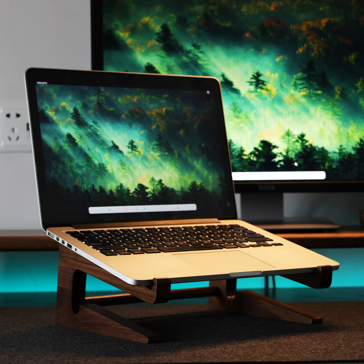 战蛛 笔记本增高收纳立式卧式支架底座托妙控键盘托胡桃木质散热