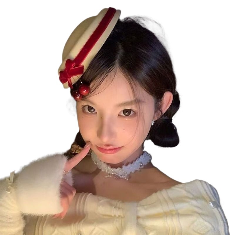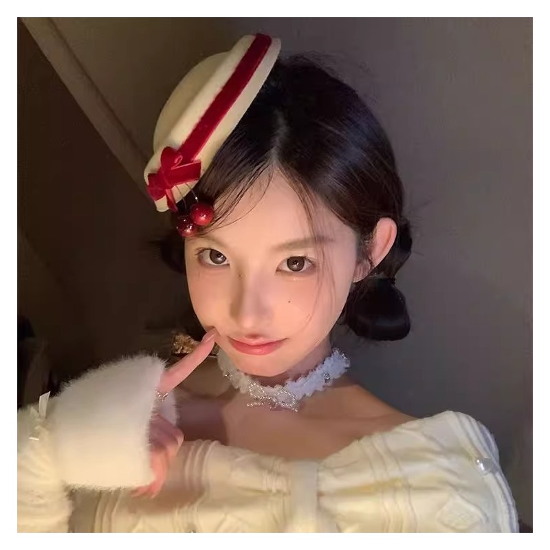 新年蝴蝶结樱桃小礼帽发饰氛围感头饰发夹发卡头饰品装扮海军帽子