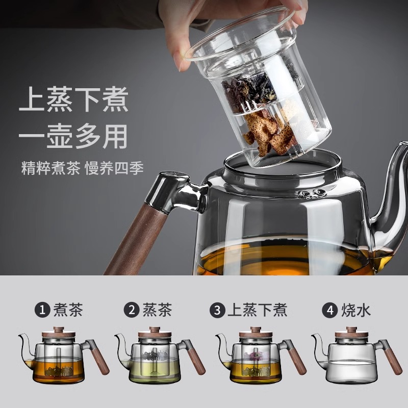 泡茶壶玻璃煮茶茶壶养生壶蒸煮一体电陶炉煮茶壶明火加热高硼硅