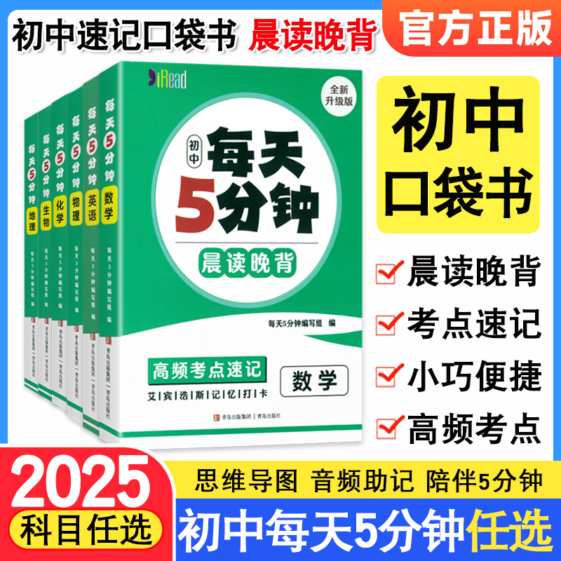 2025初中每天5五分钟晨读晚背考点速记数学物理化学语文英语政治历史地理生物中考必背小四门七八九年级知识手册一本全L计算高中