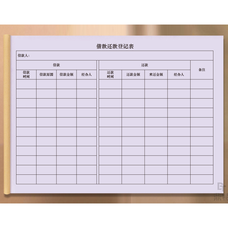借款还款登记本表客户工人员工每月预支借钱还钱备忘财务记录本公司出纳记账本借钱还钱备忘财务记录本记账本
