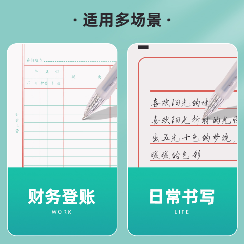 得力财务用0.35中性笔细笔头速干全针管0.38黑色登账用0.28细线幅顺滑流畅按动笔学生刷题笔针管头办公走珠笔