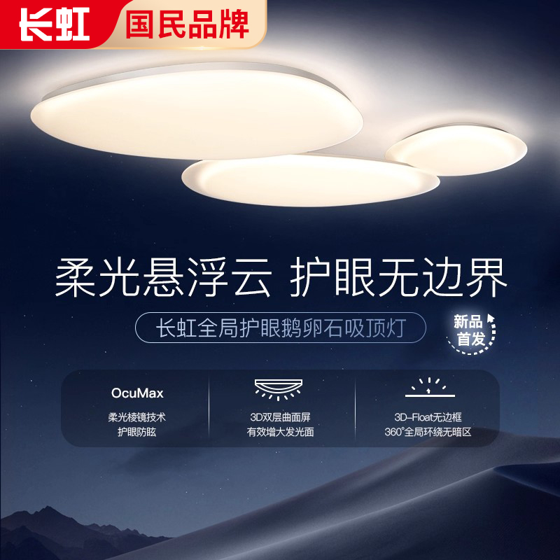 长虹客厅主灯鹅卵石吸顶灯现代简约全光谱护眼云朵灯2025新款灯具
