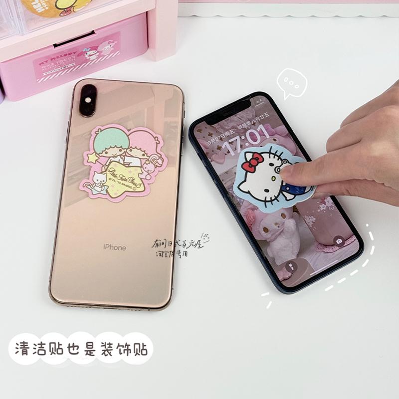 日本三丽鸥擦手机屏幕清洁布神器电脑显示屏反复使用卡通装饰贴卡