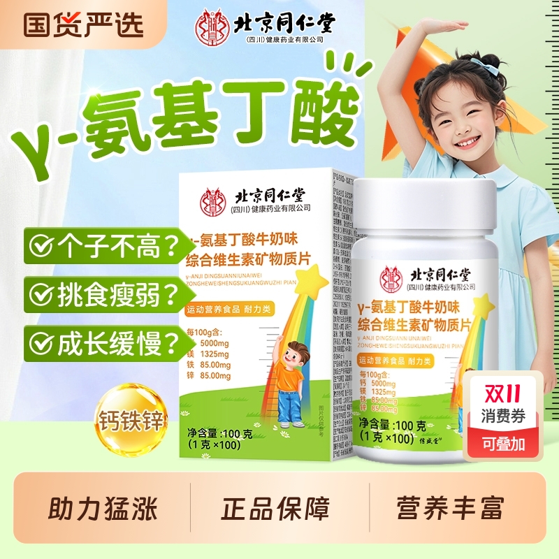 北京同仁堂氨基丁酸y儿童青少年生长素钙片长高钙铁锌复合维生素