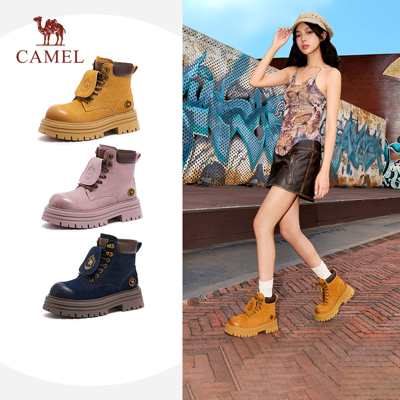 骆驼女鞋2025年秋季新款大黄靴女休闲工装靴户外马丁靴时装靴