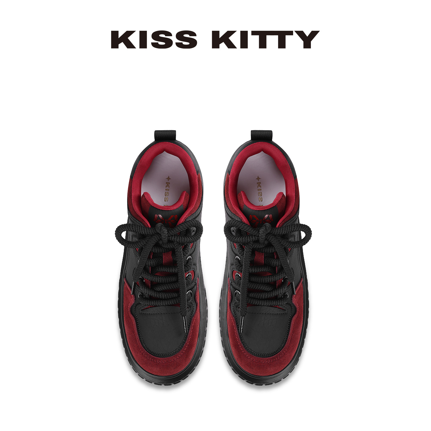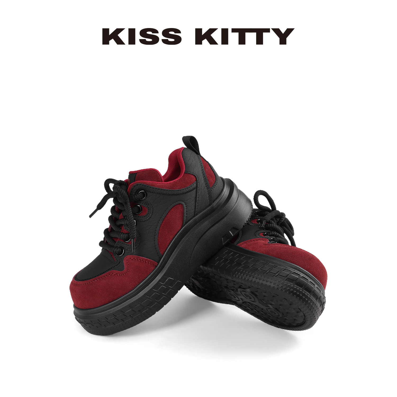 KISSKITTY厚底大头板鞋女黑红色松糕底学生百搭休闲鞋增高运动鞋