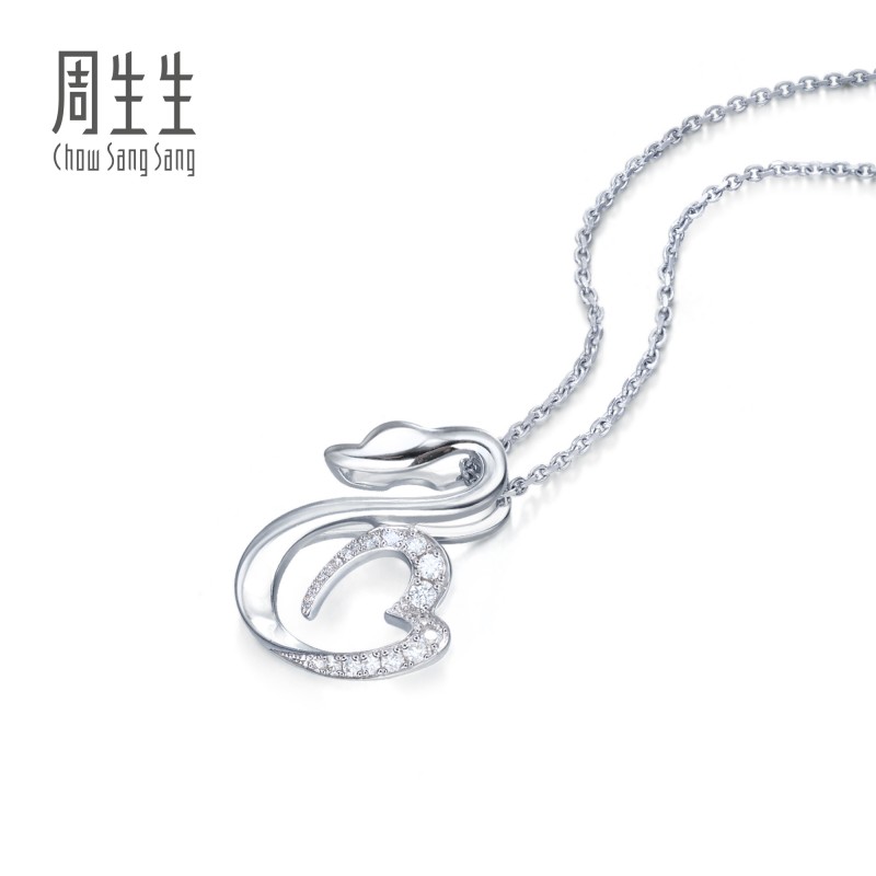 周生生钻之颂都会之颂18K白色黄金天鹅心形丝带钻石吊坠84445P