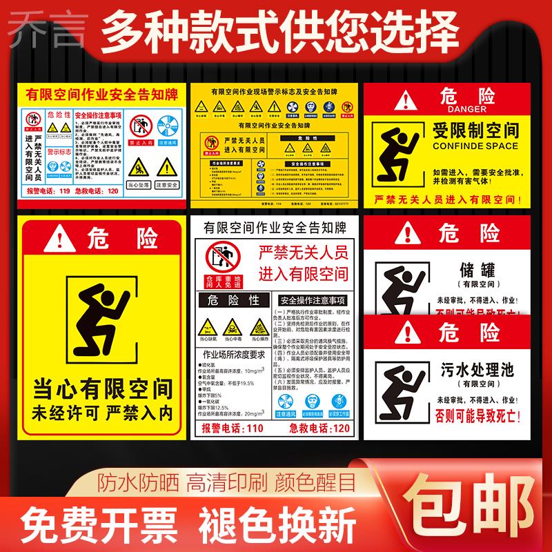 有限空间警示标识牌受限空间风险告知牌有限密闭空间作业警告标示贴纸有限空间安全告知牌设计定制标识标志牌