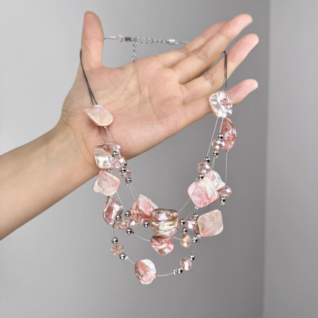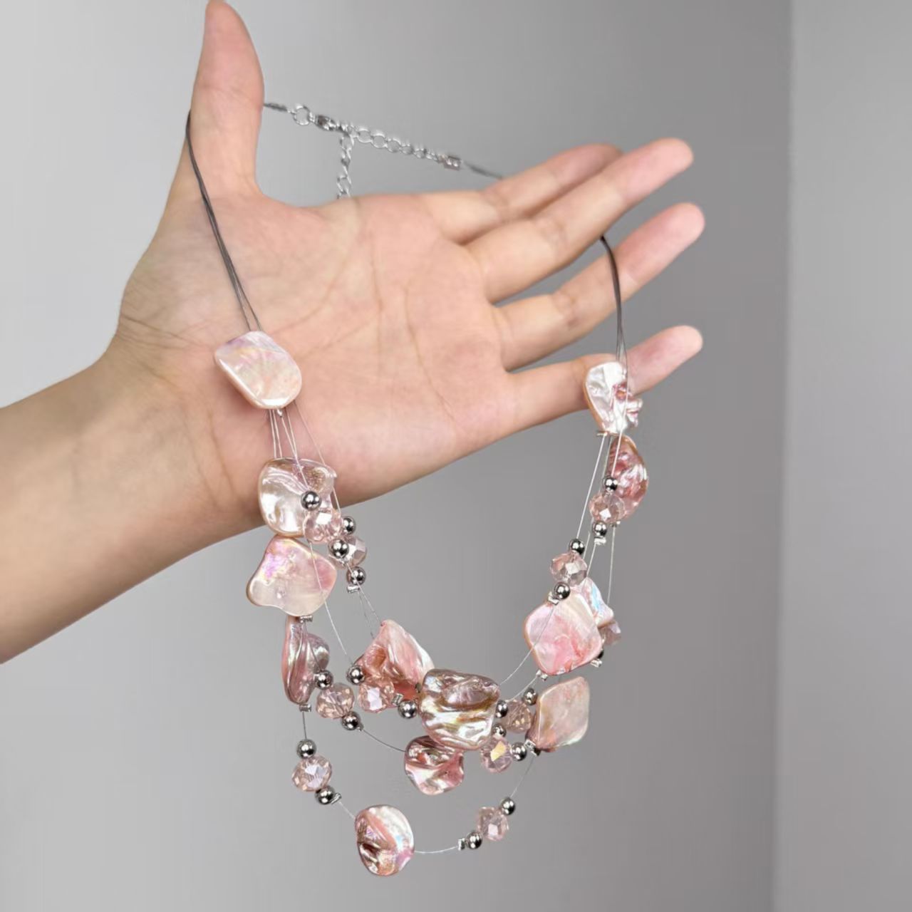 夸张碎石多层2025年项链女小众独特粉色不规则锁骨链叠戴新款法式
