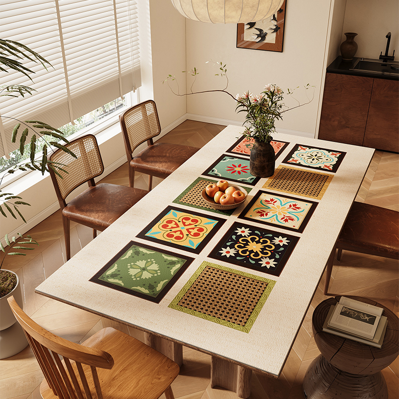 美世达南洋中古风餐桌垫防油防水防烫轻奢桌布桌面保护垫桌垫高级